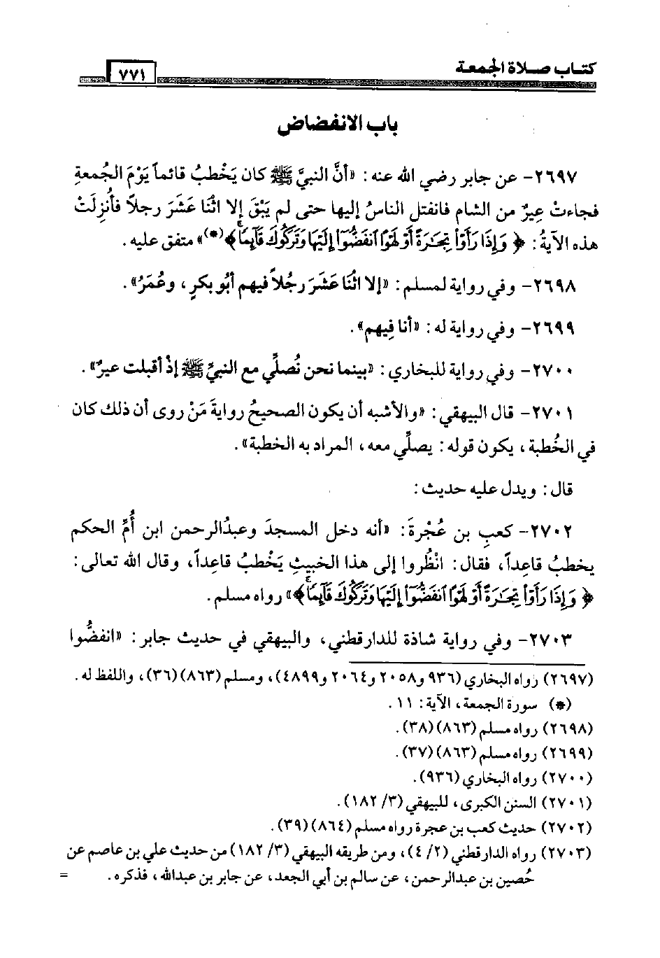 2703 - وَفِي رِوَايَة شَاذَّة للدارقطني، وَالْبَيْهَقِيّ فِي حَدِيث جَابر: " انْفَضُّوا