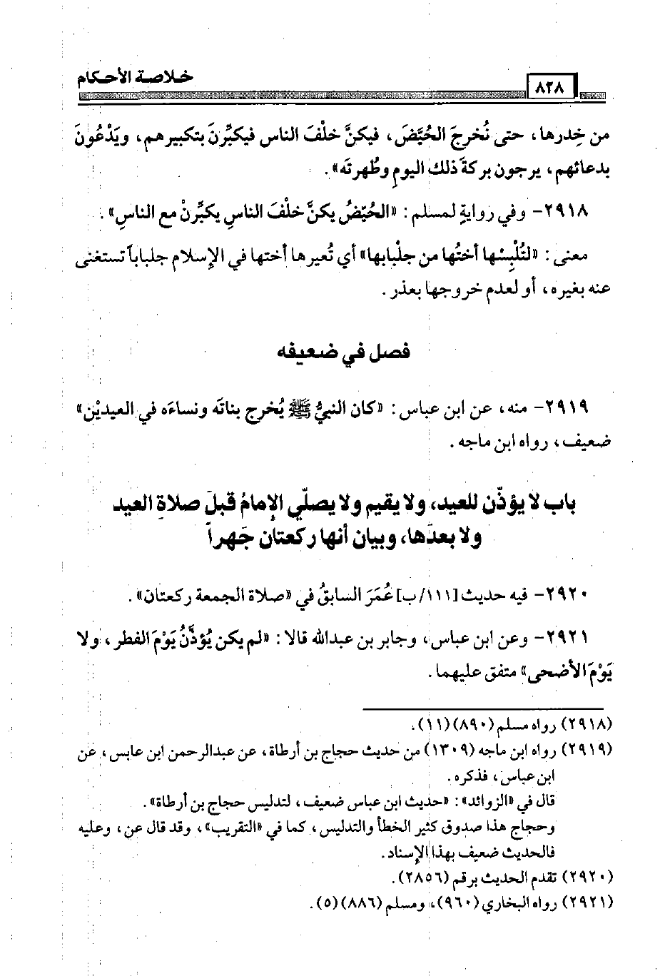 2919 - مِنْهُ، عَن ابْن عَبَّاس: " كَانَ النَّبِي صَلَّى اللَّهُ عَلَيْهِ وَسَلَّم َ يُخرج بَنَاته ونساءه فِي الْعِيدَيْنِ " ضَعِيف، رَوَاهُ ابْن مَاجَه.