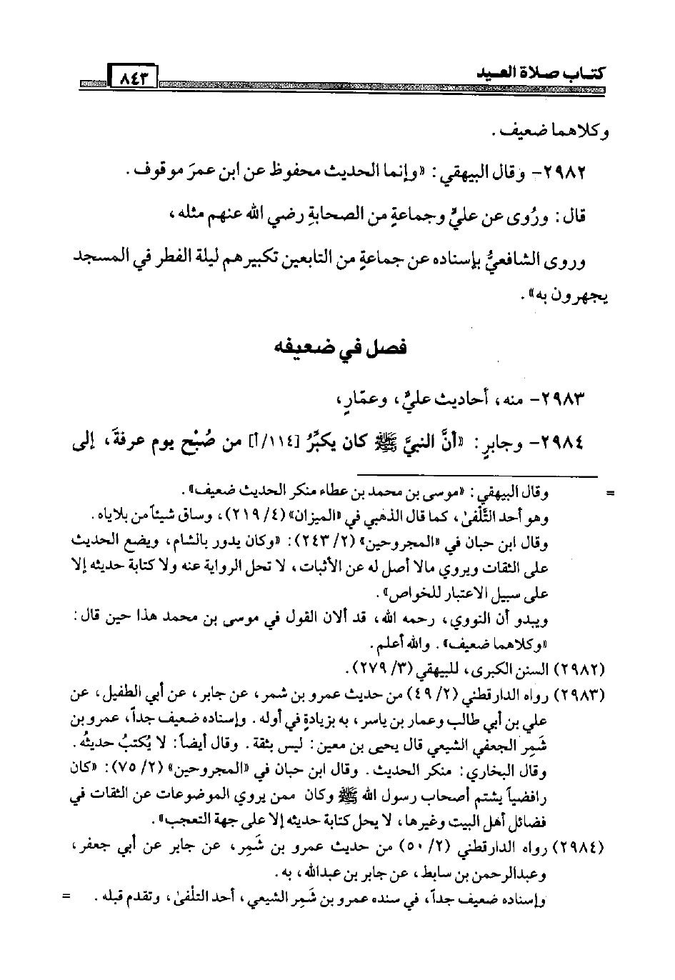 2984 - وَجَابِر: " أَن النَّبِي صَلَّى اللَّهُ عَلَيْهِ وَسَلَّم َ كَانَ يكبِّر [114 / أ] من صبح يَوْم عَرَفَة إِلَى