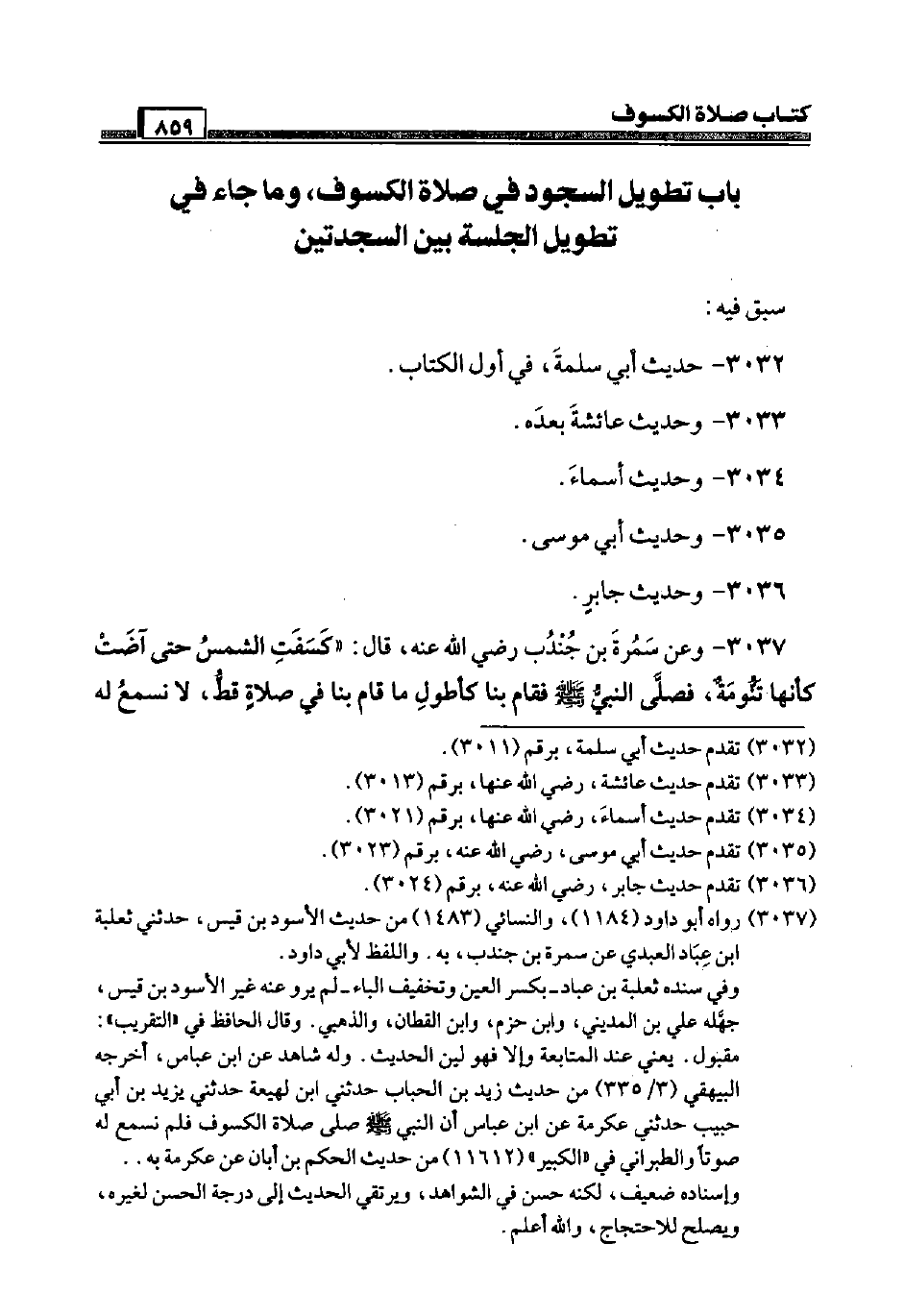 (بَاب تَطْوِيل السُّجُود فِي صَلَاة الْكُسُوف، وَمَا جَاءَ فِي تَطْوِيل الجلسة بَين السَّجْدَتَيْنِ)