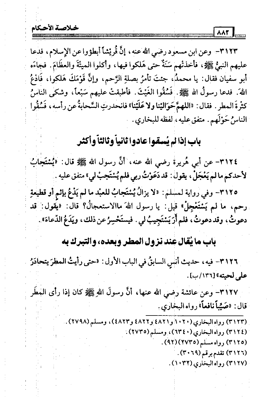 3124 - عَن أبي هُرَيْرَة رَضِيَ اللَّهُ عَنْه، أَن رَسُول الله صَلَّى اللَّهُ عَلَيْهِ وَسَلَّم َ قَالَ: " يُستجاب لأحدكم مَا لم يعْجل، يَقُول: قد دعوتُ رَبِّي فَلم يُستجب لي " مُتَّفق عَلَيْهِ.