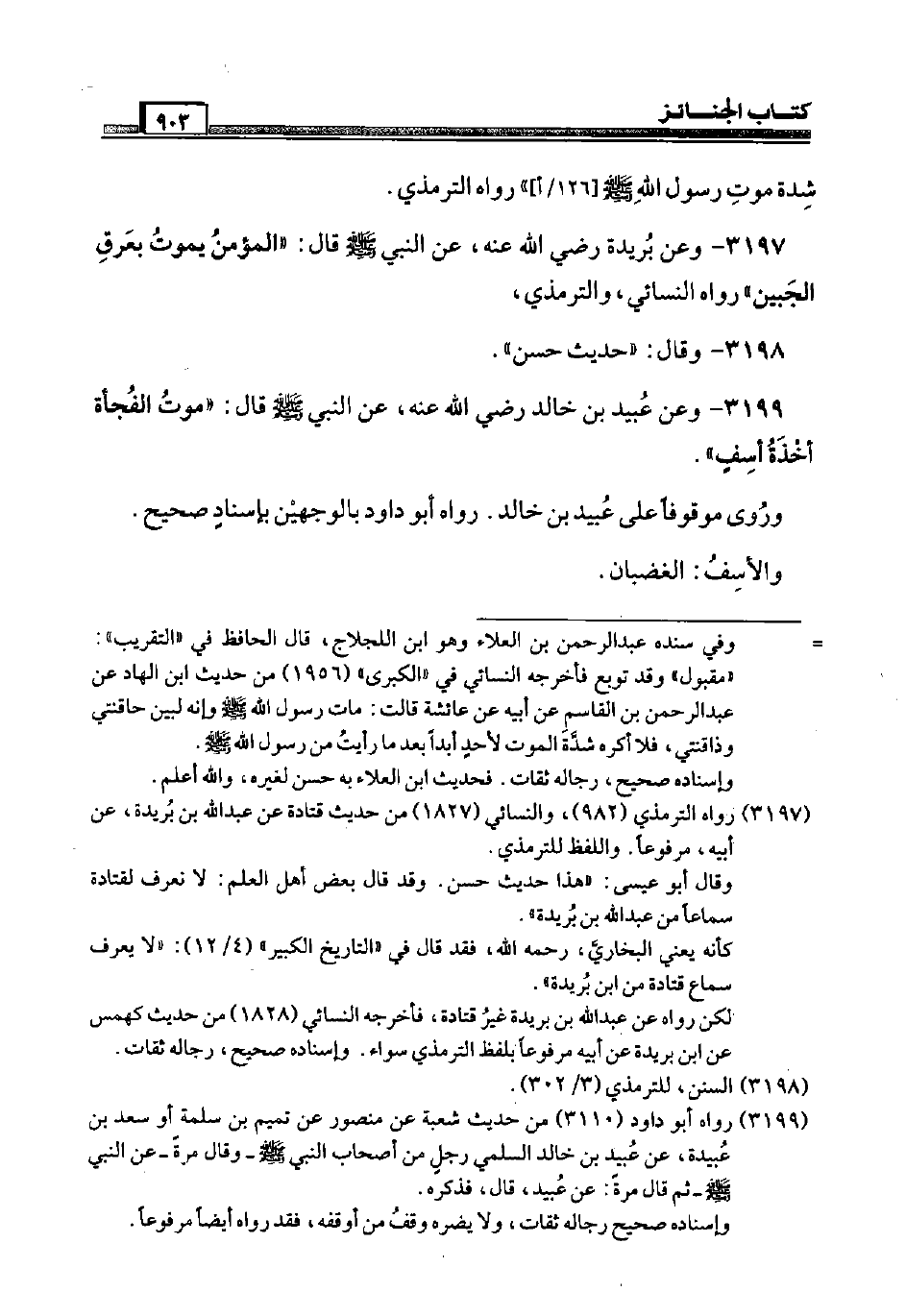 3199 - وَعَن عبيد بن خَالِد رَضِيَ اللَّهُ عَنْه، عَن النَّبِي صَلَّى اللَّهُ عَلَيْهِ وَسَلَّم َ قَالَ: " موت الْفجأَة أَخْذَة أَسف ". وَرُوِيَ مَوْقُوفا عَلَى عبيد بن خَالِد. رَوَاهُ أَبُو دَاوُد بِالْوَجْهَيْنِ بِإِسْنَاد صَحِيح. والأسف: الغضبان.