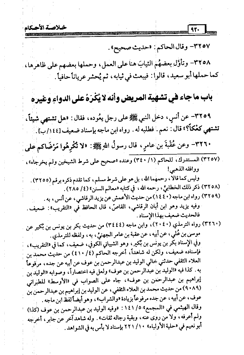 3260 - وَعَن عقبَة بن عَامر، قَالَ رَسُول الله صَلَّى اللَّهُ عَلَيْهِ وَسَلَّم َ: " لَا تكْرهُوا مرضاكم عَلَى