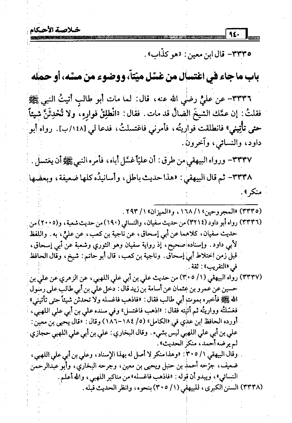 3337 - وَرَوَاهُ الْبَيْهَقِيّ من طرق: أَن عليا غسَّل أَبَاهُ، فَأمره النَّبِي صَلَّى اللَّهُ عَلَيْهِ وَسَلَّم َ أَن يغْتَسل.