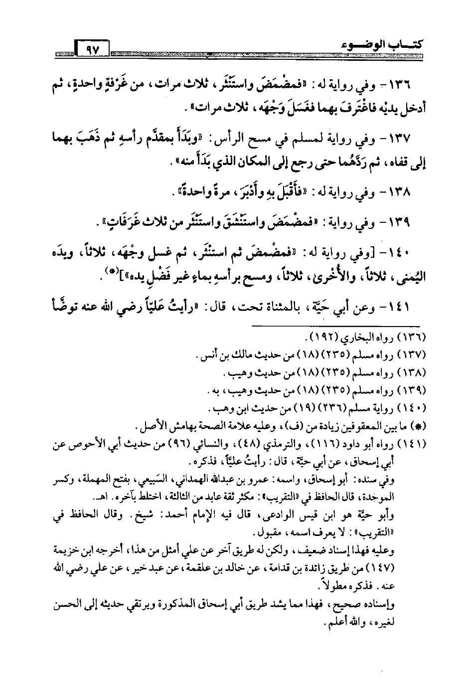 141 - وَعَن أبي حَيَّة، بِالْمُثَنَّاةِ تَحت، قَالَ: " رَأَيْت عليا رَضِيَ اللَّهُ عَنْه تَوَضَّأ