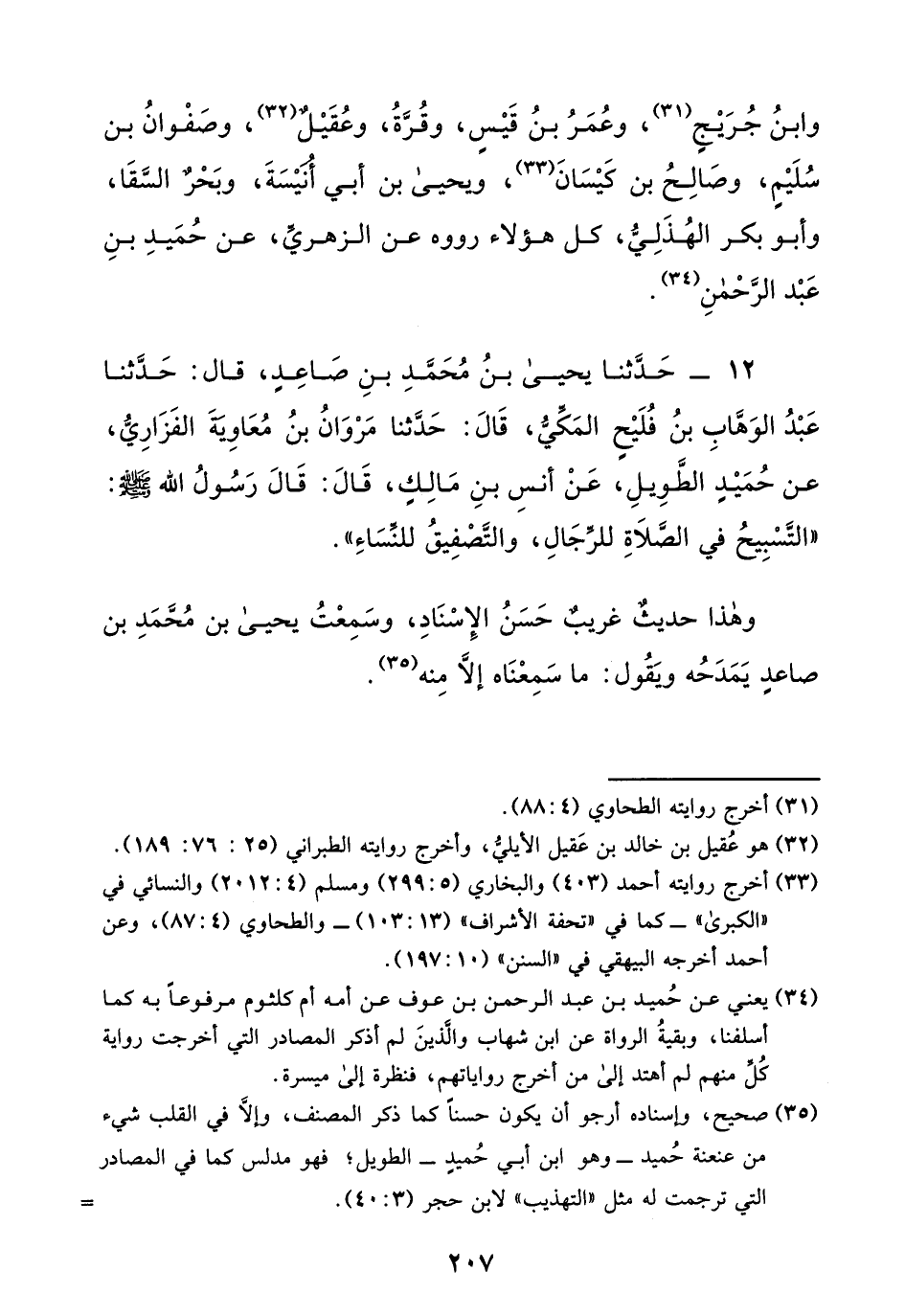 12- حَدَّثَنَا يَحْيَى بْنُ مُحَمَّدِ بْنِ صَاعِدٍ قَالَ حَدَّثَنَا عَبْدُ الْوَهَّابِ بْنُ فُلَيْحٍ الْمَكِّيُّ قَالَ حَدَّثَنَا مَرْوَانُ بْنُ مُعَاوِيَةَ الْفَزَارِيُّ عَنْ حُمَيْدٍ الطَّوِيلِ عَنْ أَنَسِ بْنِ مَالِكٍ قَالَ قَالَ رَسُولُ اللَّهِ صَلَّى اللَّهُ عَلَيْهِ وَسَلَّمَ: " التَّسْبِيحُ فِي الصَّلاةِ لِلرِّجَالِ وَالتَّصْفِيقُ لِلنِّسَاءِ ".