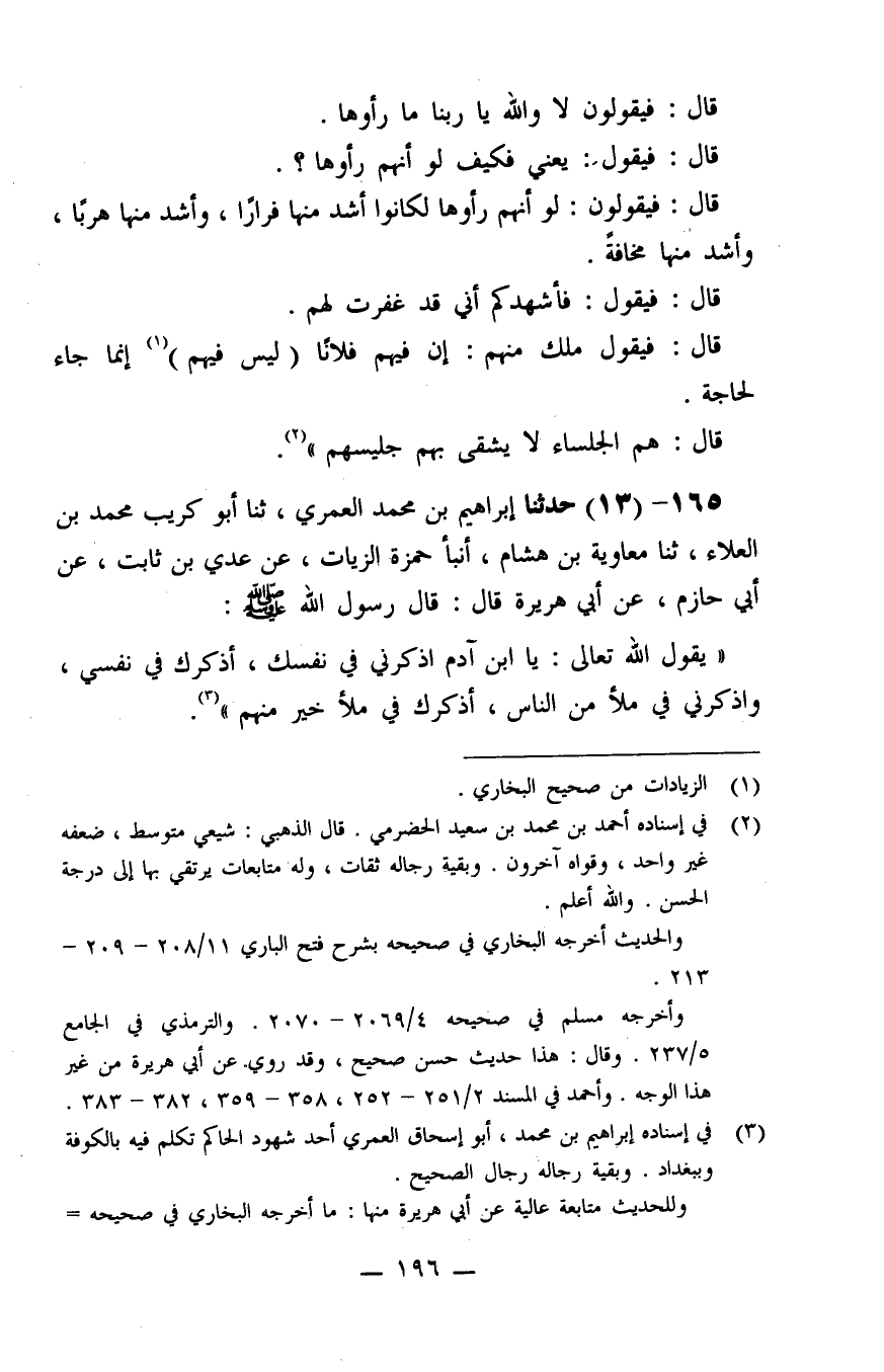 165 - حَدَّثَنَا إِبْرَاهِيمُ بْنُ مُحَمَّدٍ الْعُمَرِيُّ، ثنا أَبُو كُرَيْبٍ مُحَمَّدُ بْنُ الْعَلَاءِ، ثنا مُعَاوِيَةُ بْنُ هِشَامٍ، أَنْبَأَ حَمْزَةُ الزَّيَّاتُ، عَنْ عَدِيِّ بْنِ ثَابِتٍ، عَنْ أَبِي حَازِمٍ، عَنْ أَبِي هُرَيْرَةَ، قَالَ: قَالَ رَسُولُ اللَّهِ صَلَّى اللَّهُ عَلَيْهِ وَسَلَّمَ: " يَقُولُ اللَّهُ تَعَالَى: يَا ابْنَ آدَمَ، اذْكُرْنِي فِي نَفْسِكَ أَذْكُرْكَ فِي نَفْسِي، وَاذْكُرْنِي فِي مَلَأٍ مِنَ النَّاسِ أَذْكُرْكَ فِي مَلَأٍ خَيْرٍ مِنْهُمْ "
