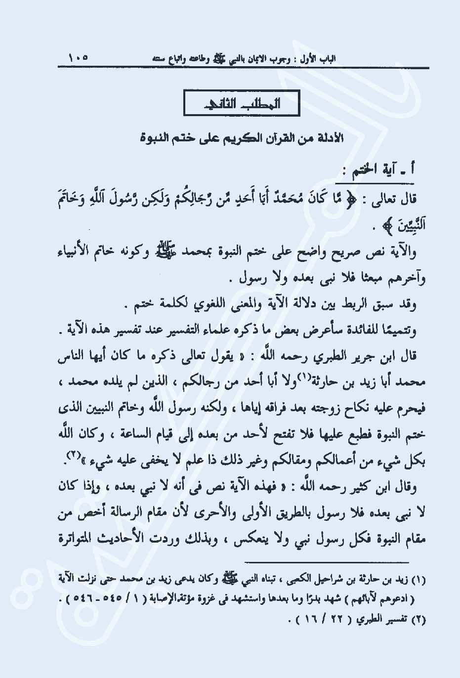المطلب الثاني: الأدلة من القرآن الكريم على ختم النبوة.