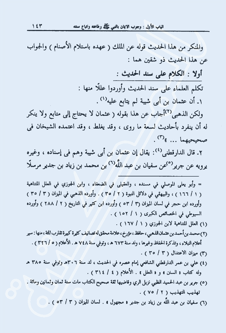 2- قال الدارقطني4: "يقال إن عثمان بن أبي شيبة وهم في إسناده، وغيره يرويه عن جرير5 عن سفيان بن عبد الله6 بن محمد بن زياد بن جدير مرسلا