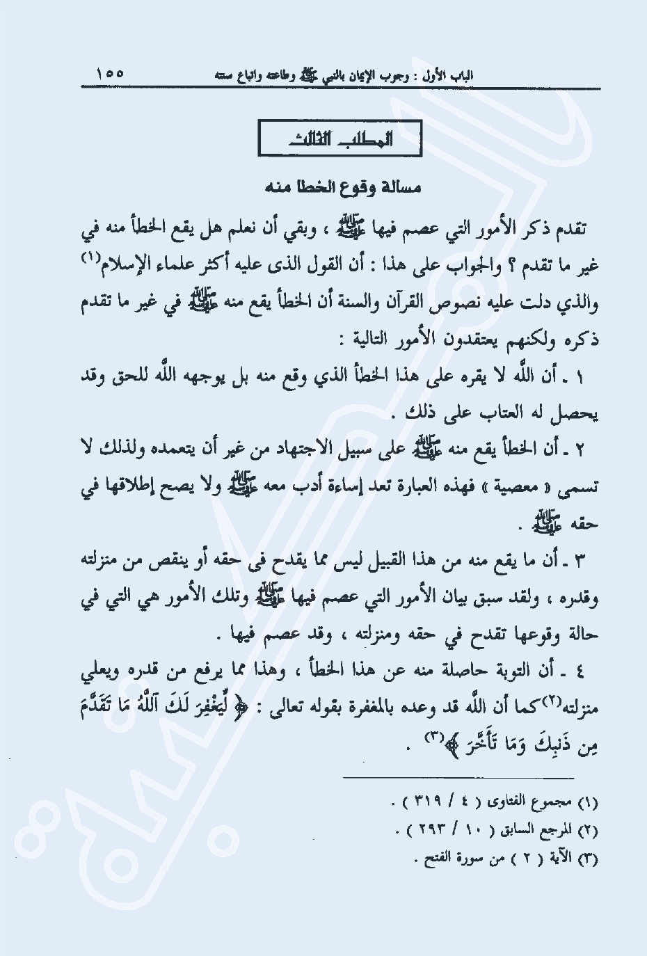 المطلب الثالث: مسألة وقوع الخطأ منه.