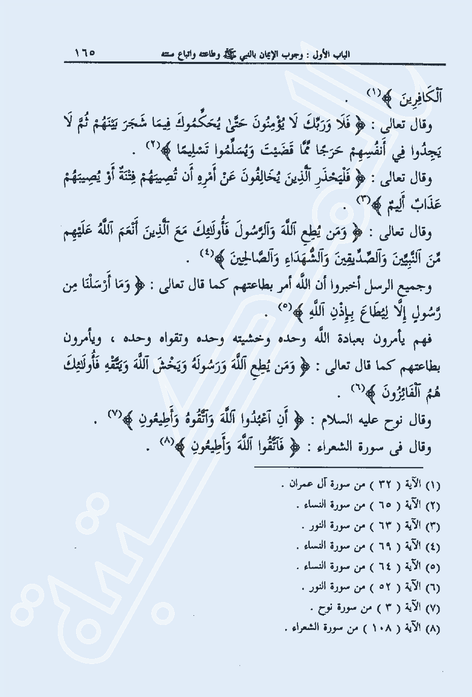 وقال تعالى: {فَلا وَرَبِّكَ لا يُؤْمِنُونَ حَتَّى يُحَكِّمُوكَ فِيمَا شَجَرَ بَيْنَهُمْ ثُمَّ لا يَجِدُوا فِي أَنْفُسِهِمْ حَرَجاً مِمَّا قَضَيْتَ وَيُسَلِّمُوا تَسْلِيماً} 2.