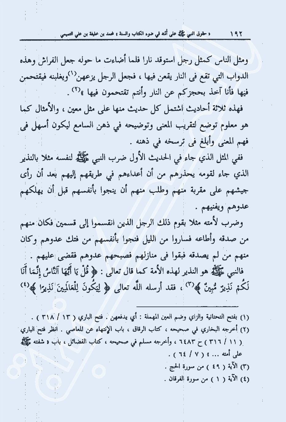 2 أخرجه البخاري في صحيحه، كتاب الرقاق: باب الانتهاء عن المعاصي. انظر فتح الباري (11/ 316) خ 6483، وأخرجه مسلم في صحيحه، كتاب الفضائل: باب شفقته صلى الله عليه وسلم على أمته ... (7/ 64) .