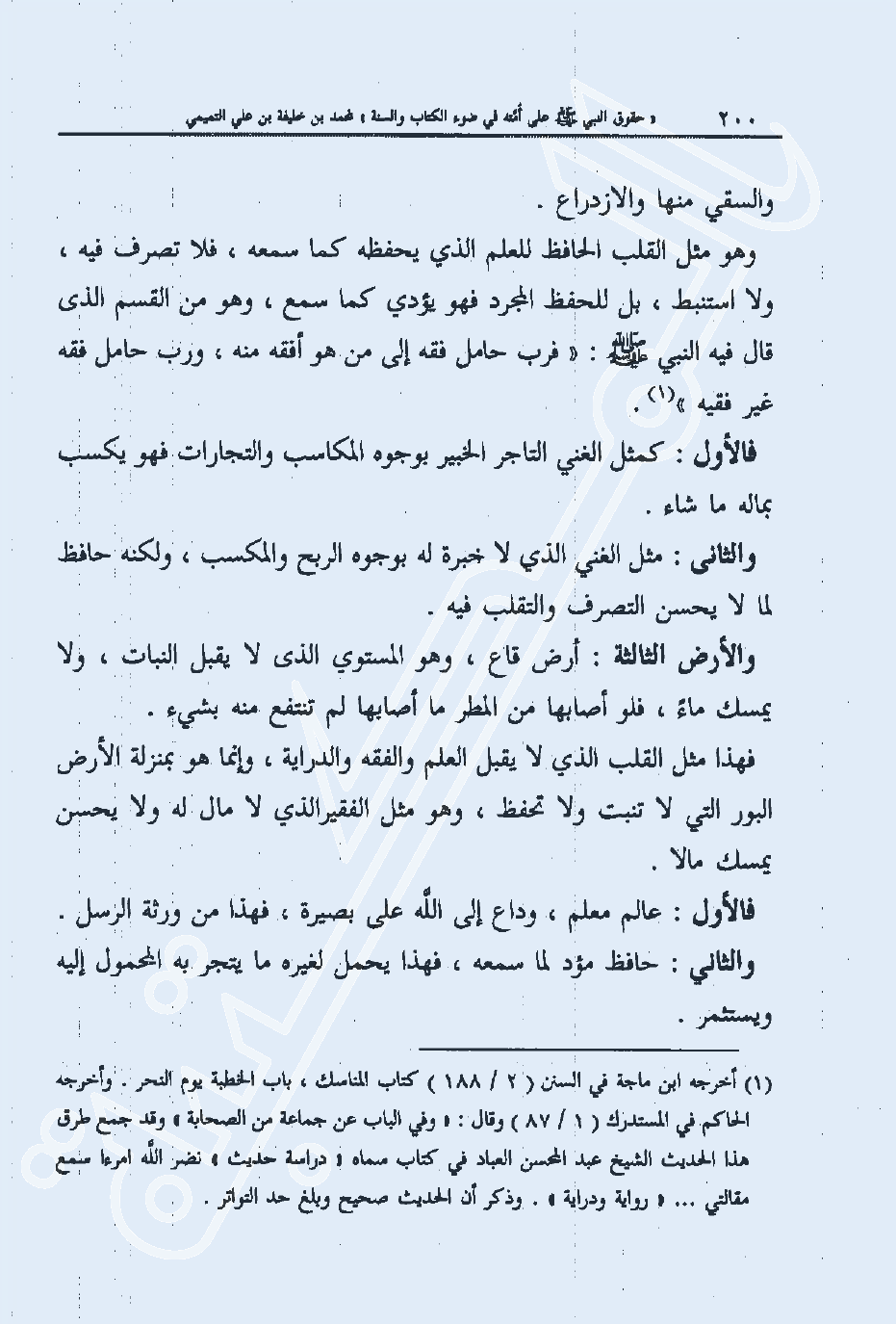 والثاني: حافظ مؤد لما سمعه، فهذا يحمل لغيره ما يتجر به المحمول إليه ويستثمر.