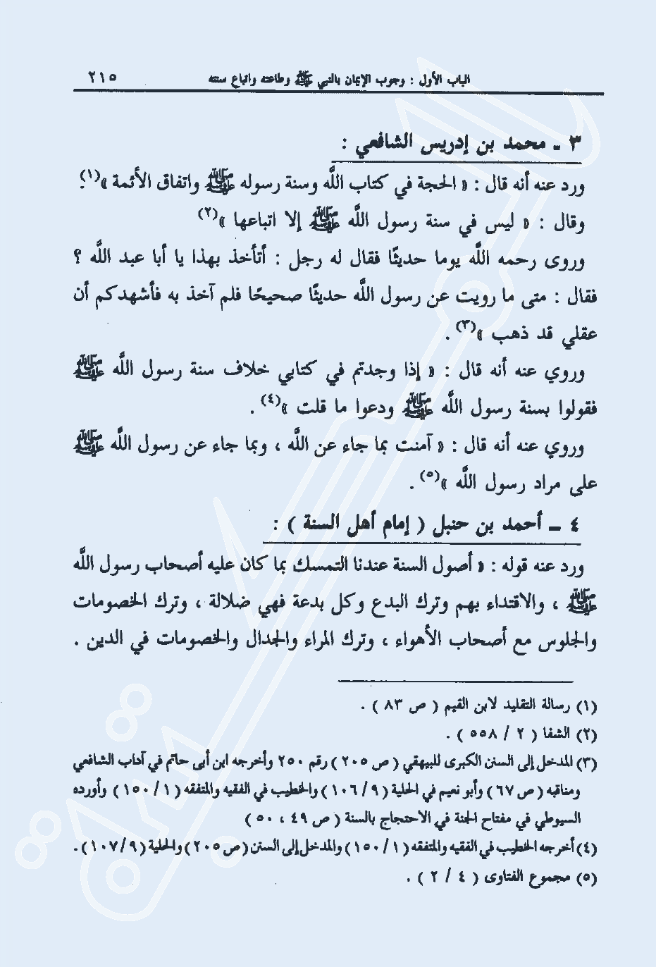 3 المدخل إلى السنن الكبرى للبيهقي (ص 205) رقم 250، وأخرجه ابن أبي حاتم في آداب الشافعي ومناقبه (ص 67) ، وأبو نعيم في الحلية (9/ 106) ، والخطيب في الفقيه والمتفقه (1/ 150) ، وأورده السيوطي في مفتاح الجنة في الاحتجاج بالسنة (ص 49، 50) .