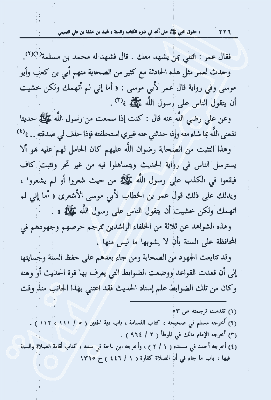 وهذه الشواهد عن ثلاثة من الخلفاء الراشدين تترجم حرصهم وجهودهم في المحافظة على السنة بأن لا يشوبها ما ليس منها.