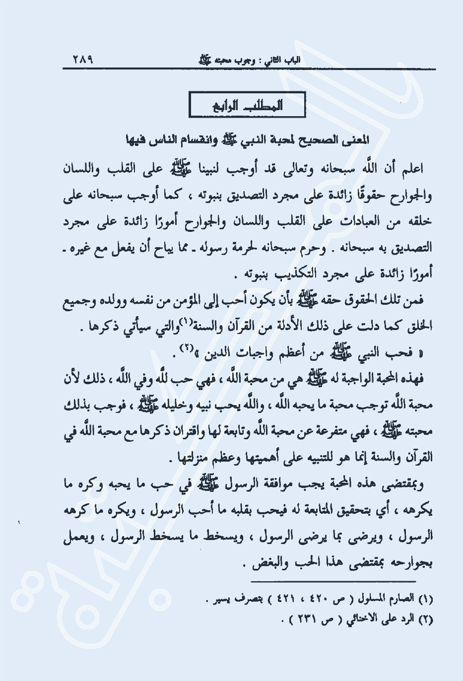 المطلب الرابع: المعنى الصحيح لمحبة النبي صلى الله عليه وسلم وانقسام الناس فيها: