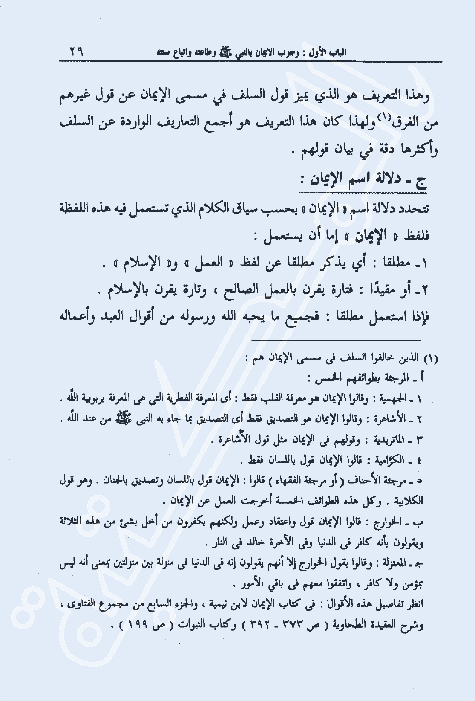 وهذا التعربف هو الذي يميز قول السلف في مسمى الإيمان عن قول غيرهم من الفرق1 ولهذا كان هذا التعريف هو أجمع التعاريف الواردة عن السلف وأكثرها دقة في بيان قولهم.