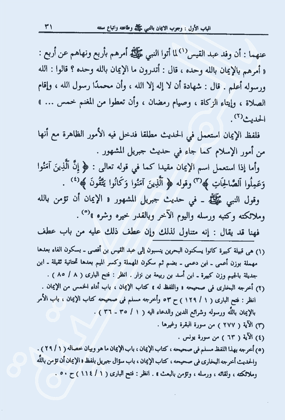 2 أخرجه البخارى في صحيحه واللفظ له: كتاب الإيمان، باب أداء الخمس من الإيمان. انظر: فتح الباري (1/129) ح 53، وأخرجه مسلم في صحيحه: كتاب الإيمان، باب الأمر بالإيمان بالله ورسوله وشرائع الدين والدعاء إليه (1/35 - 36) .