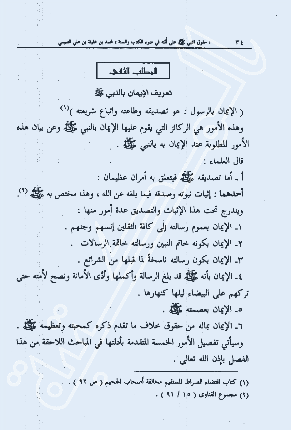 المطلب الثاني: تعريف الإيمان بالنبي صلى الله عليه وسلم