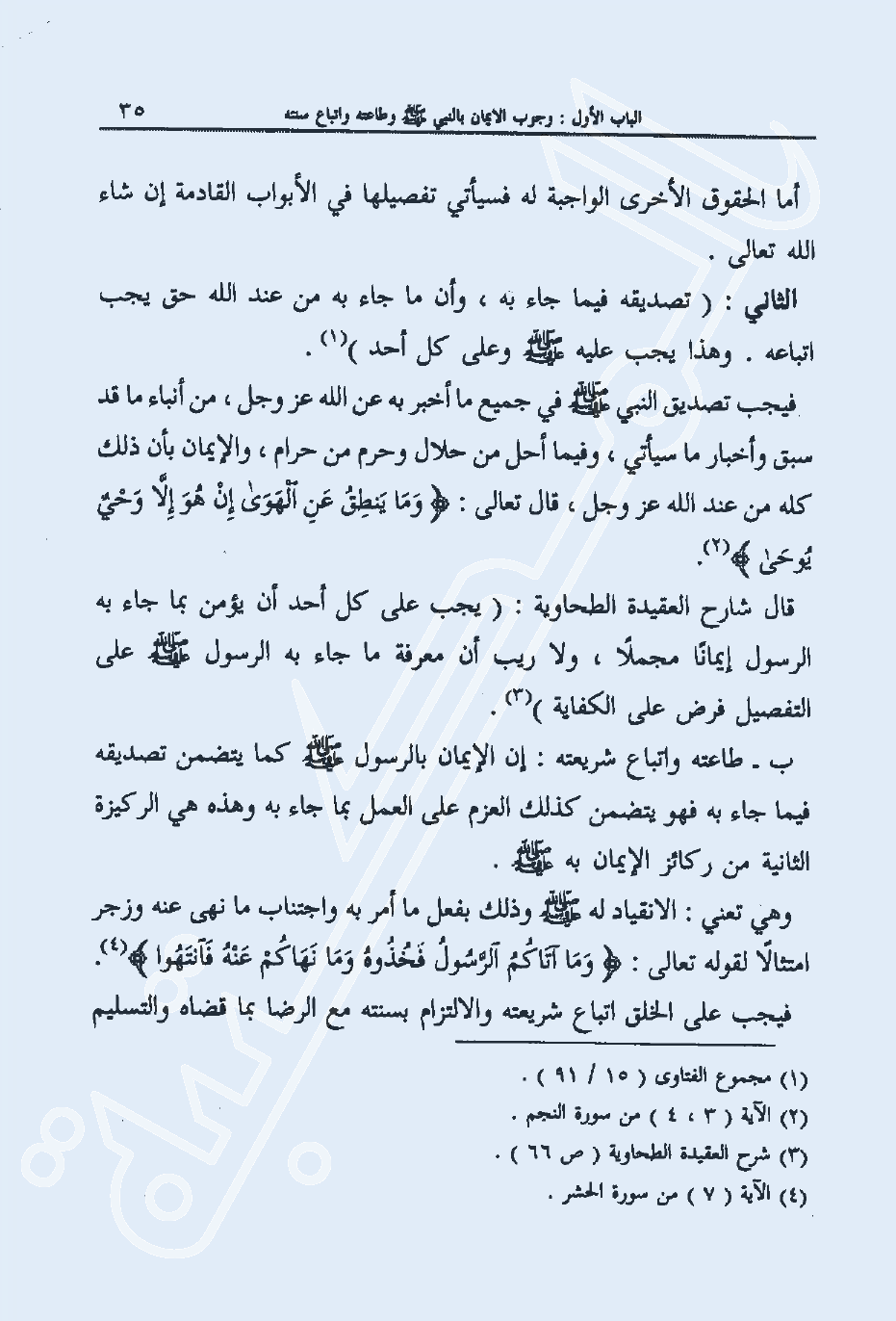 قال شارح العقيدة الطحاوية: "يجب على كل أحد أن يؤمن بما جاء به الرسول إيمانا هملا، ولا ريب أن معرفة ما جاء به الرسول صلى الله عليه وسلم على التفصيل فرض على الكفاية"3.