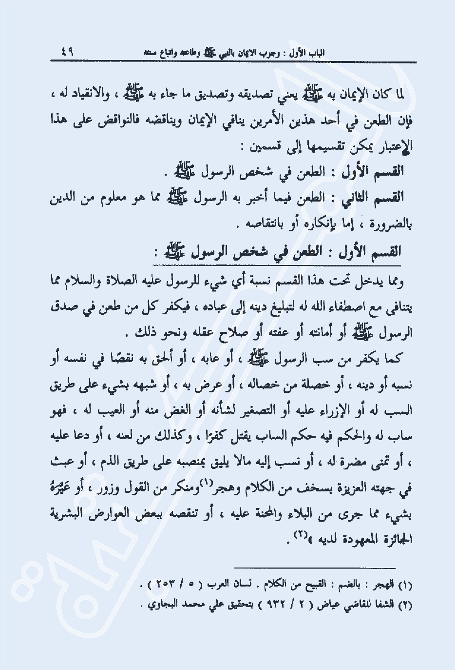 2 الشفا للقاضي عياض (2/ 932) بتحقيق علي محمد البجاوي.