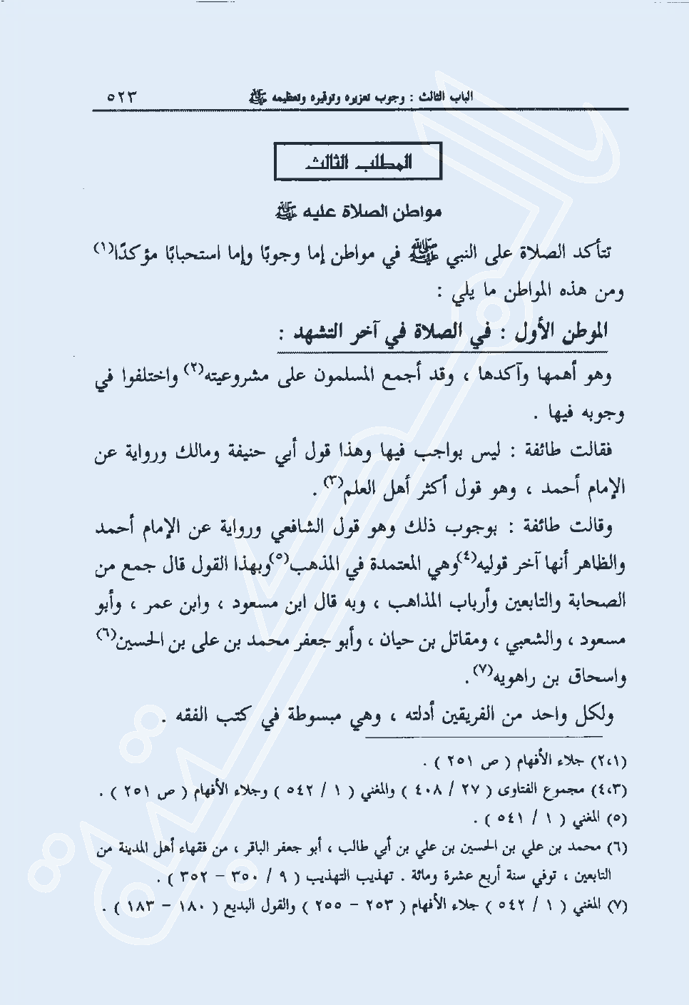 7 المغني (1/ 542) جلاء الأفهام (253- 255) والقول البديع (180- 183) .