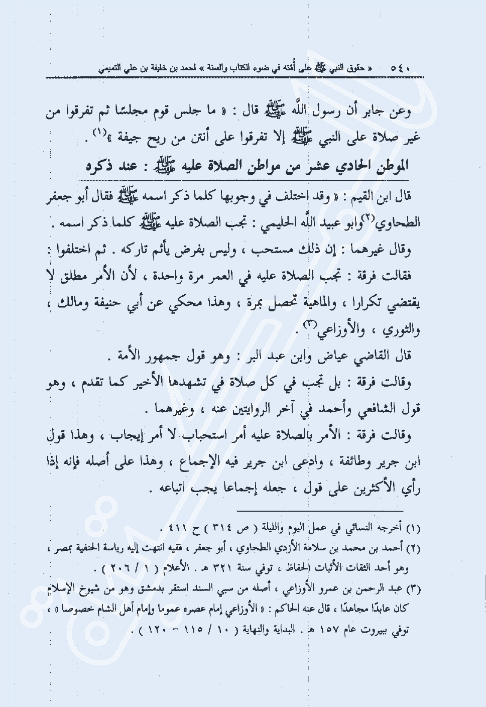 الموطن الحادي عشرمن مواطن الصلاة عليه صلى الله عليه وسلم عند ذكره