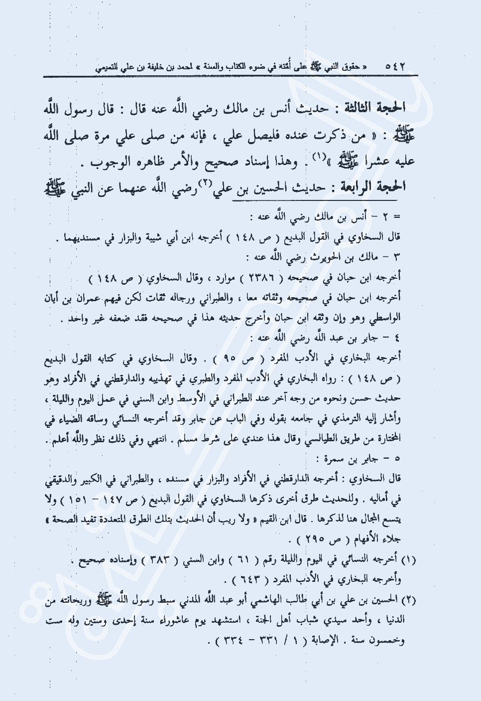 الحجة الرابعة: حديث الحسين بن علي2 رضي الله عنهما عن النبي صلى الله عليه وسلم