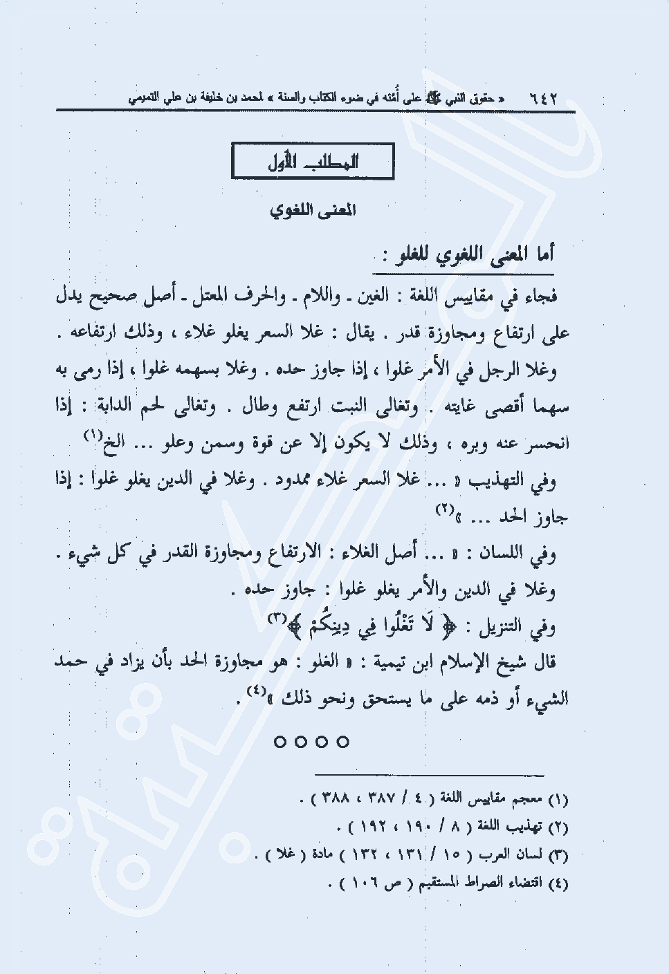 الفصل الأول: تعريف الغلو وسد الشارع لطرق الغلو في حقه صلى الله عليه وسلم