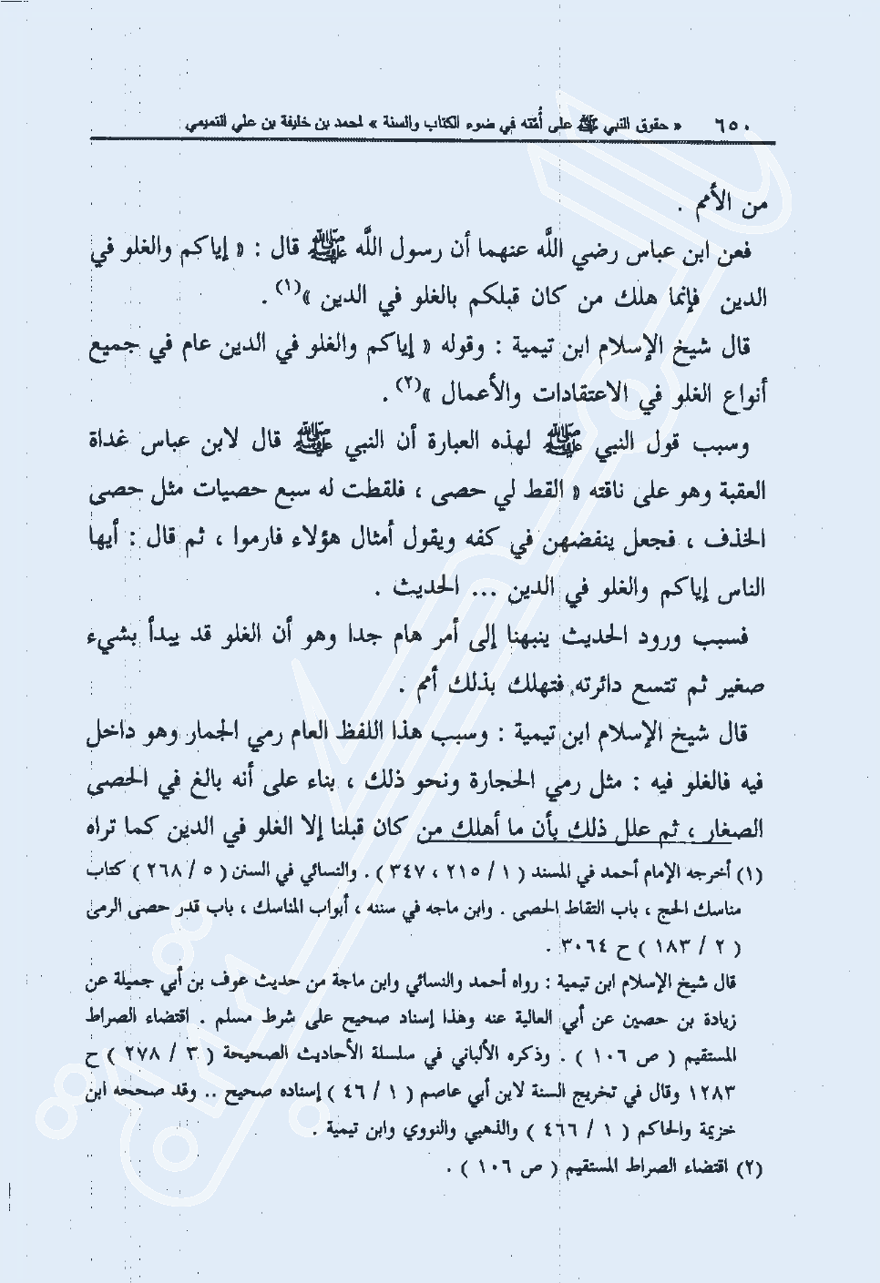قال شيخ الإسلام ابن تيمية: وقوله "إياكم والغلو في الدين عام في جميع أنواع الغلو في الاعتقادات والأعمال" 2.