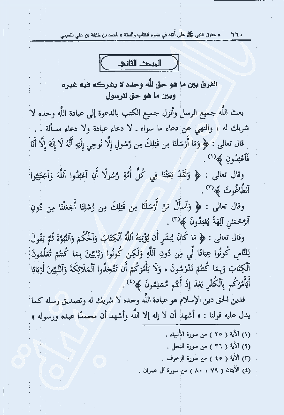 المبحث الثاني: الفرق بين ما هو حق لله وحده لا يشركه فيه غيره وبين ما هو حق للرسول