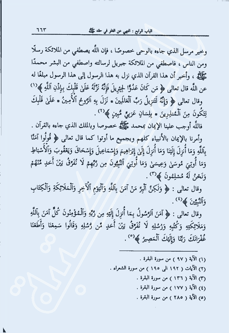 وقال تعالى: {وَلَكِنَّ الْبِرَّ مَنْ آمَنَ بِاللَّهِ وَالْيَوْمِ الآخِرِ وَالْمَلائِكَةِ وَالْكِتَابِ وَالنَّبِيِّينَ} 4.