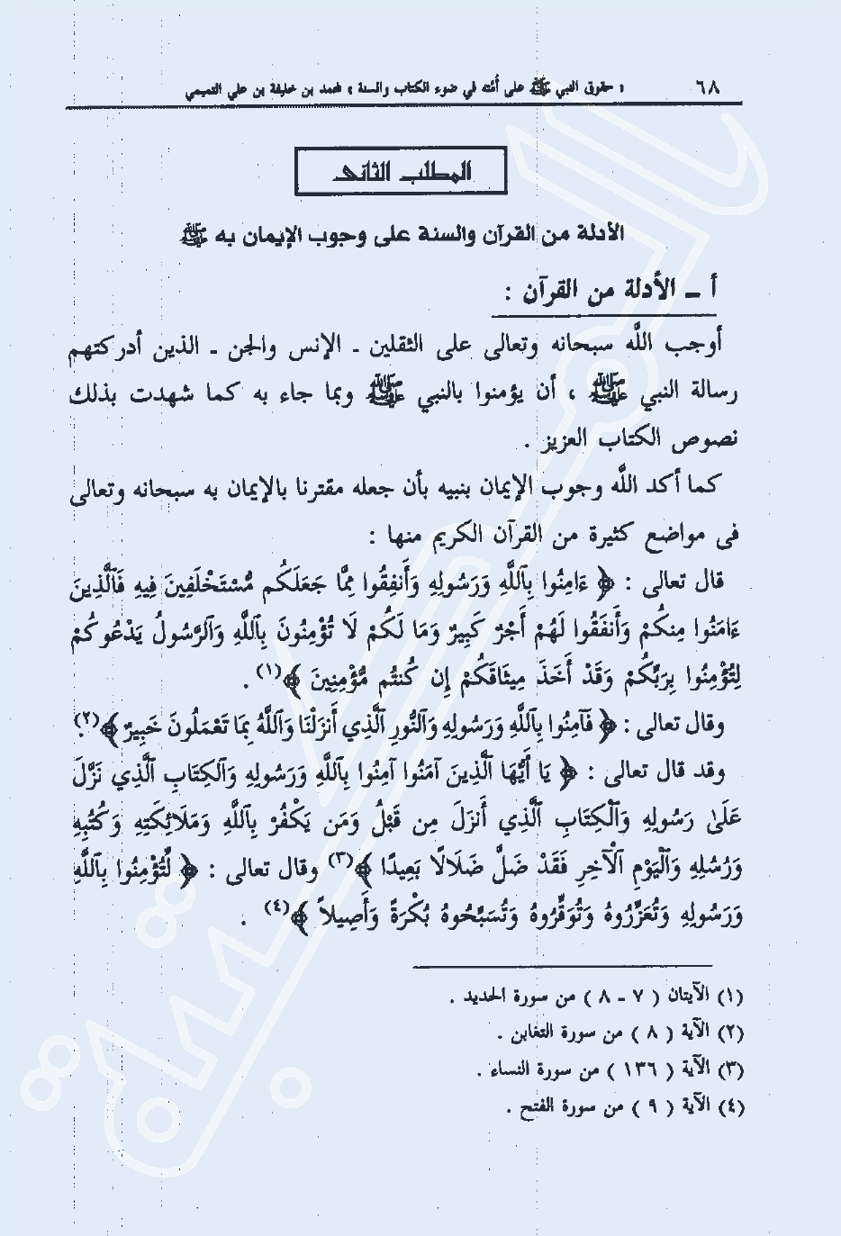 المطلب الثاني: الأدلة من القرآن والسنة على وجوب الإيمان به صلى الله عليه وسلم