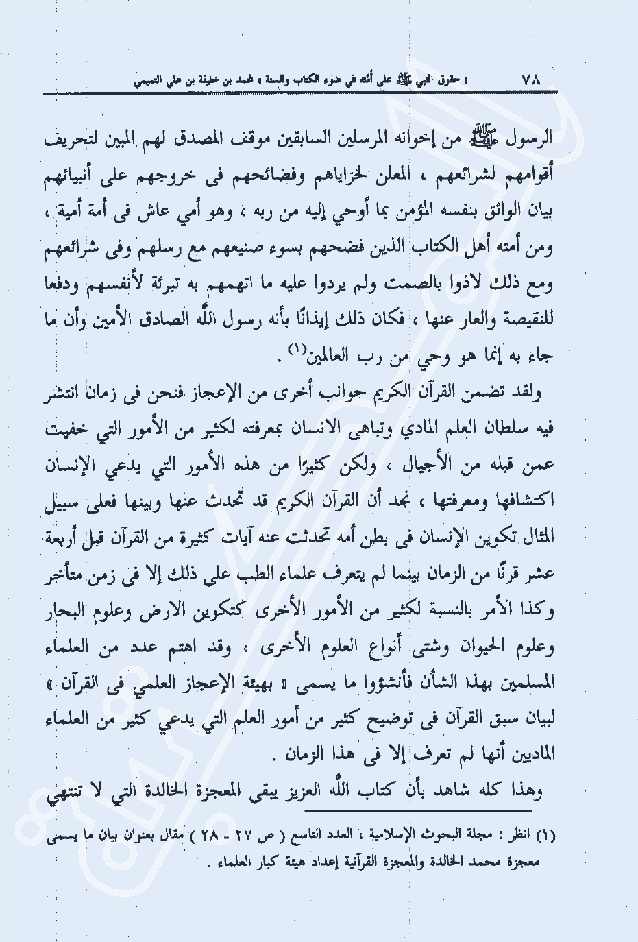 1 انظر مجلة البحوث الإسلامية، العدد التاسع (ص 27- 28) مقال بعنوان بيان ما يسمى معجزة محمد الخالدة والمعجزة القرآنية إعداد هيئة كبار العلماء.