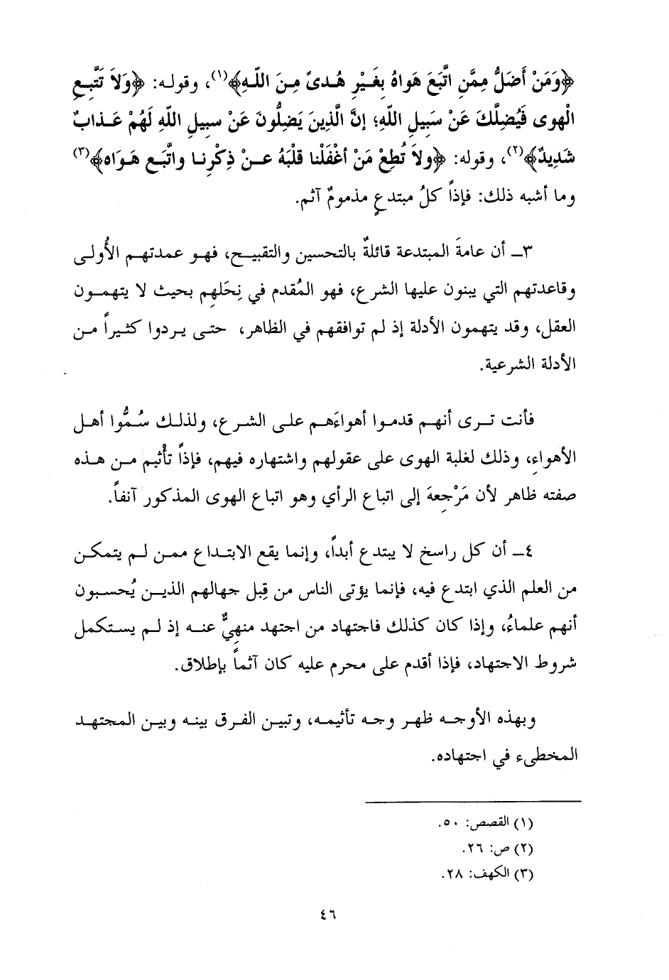 {وَمَنْ أَضَلُّ مِمَّنِ اتَّبَعَ هَواهُ بِغَيْرِ هُدىً مِنَ اللَّهِ} (¬1) ، وَقَوْلِهِ: {وَلاَ تَتَّبِعِ الْهوى فَيُضِلَّكَ عَنْ سَبِيلِ اللهِ؛ إنَّ الَّذِينَ يَضِلُّونَ عَنْ سبِيلِ اللهِ لَهُمْ عَذابٌ شَدِيدٌ} (¬2) ، وَقَوْلِهِ: {ولاَ تُطِعْ مَنْ أغْفَلْنا قلْبَهُ عنْ ذِكْرِنا واتَّبَع هَوَاه} (¬3) وَمَا أَشْبَهَ ذَلِكَ: فَإِذًا كلُ مبتدعٍ مذمومٌ آثم.