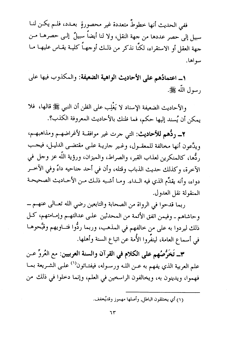 رُبَّمَا قَدَحُوا فِي الرُّوَاةِ مِنَ الصَّحَابَةِ وَالتَّابِعِينَ رضي الله تعالى عنهم -وحاشاهم- وفيمن اتَّفَقَ الْأَئِمَّةُ مِنَ الْمُحَدِّثِينَ عَلَى عَدَالَتِهِمْ وَإِمَامَتِهِمْ، كُلُّ ذَلِكَ لِيَرُدُّوا بِهِ عَلَى مَنْ خَالَفَهُمْ فِي الْمَذْهَبِ، وَرُبَّمَا ردُّوا فَتَاوِيَهُمْ وقبَّحوها فِي أَسْمَاعِ الْعَامَّةِ، لينفِّروا الأُمة عَنْ أَتْبَاعِ السُّنَّةِ وأهلها.