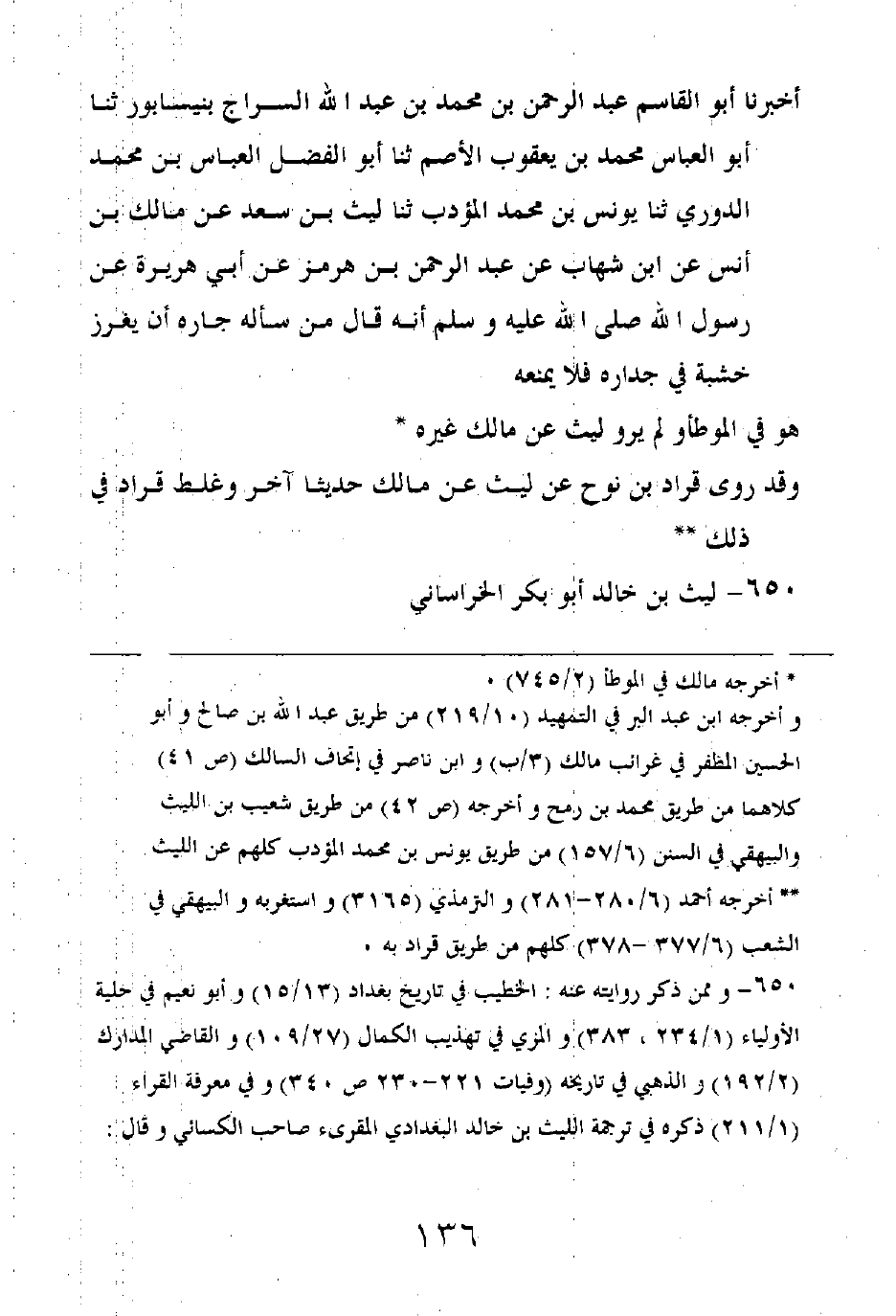 هو في الموطأ لم يرو ليث عن مالك غيره.