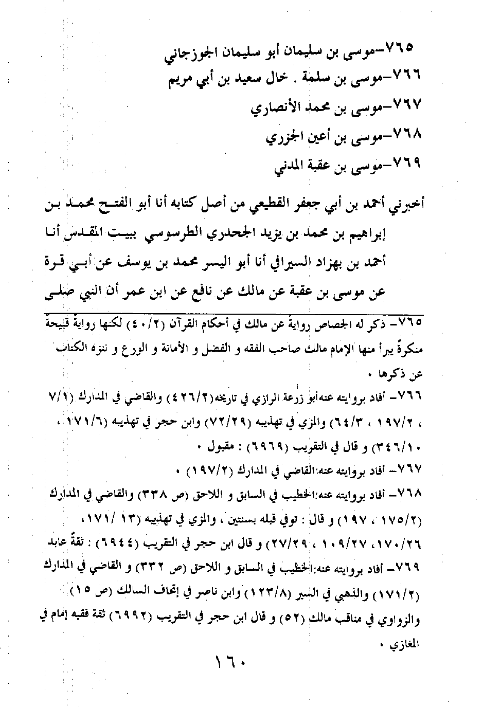 أخبرني أحمد بن أبي جعفر القطيعي من أصل كتابه أنا أبو الفتح محمد بن إبراهيم بن محمد بن يزيد الجحدري الطرسوسي ببيت المقدس، أنا أحمد بن بهزاد السيرافي، أنا أبو اليسر محمد بن يوسف، عن أبي قرة، عن موسى بن عقبة، عن مالك، عن نافع، عن ابن عمر أن النبي صلى الله عليه وسلم