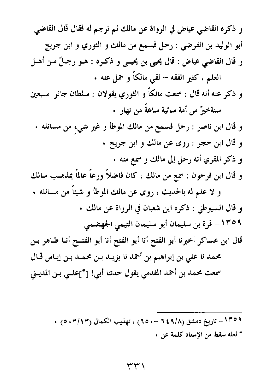 وقال القاضي عياض: قال يحيى بن يحيى وذكره: هو رجلٌ من أهل العلم، كثير الفقه - لقي مالكاً وحمل عنه.