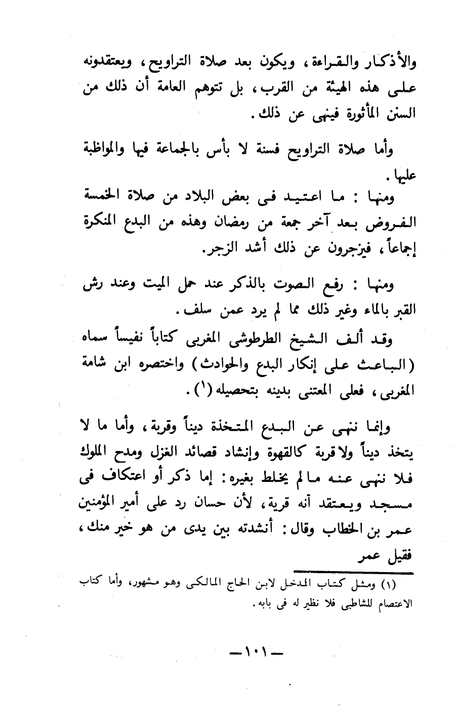 1 ومثل كتاب المدخل لابن الحاج المالكي وهو مشهور، وأما كتاب الاعتصام للشاطبي فلا نظير له في بابه.