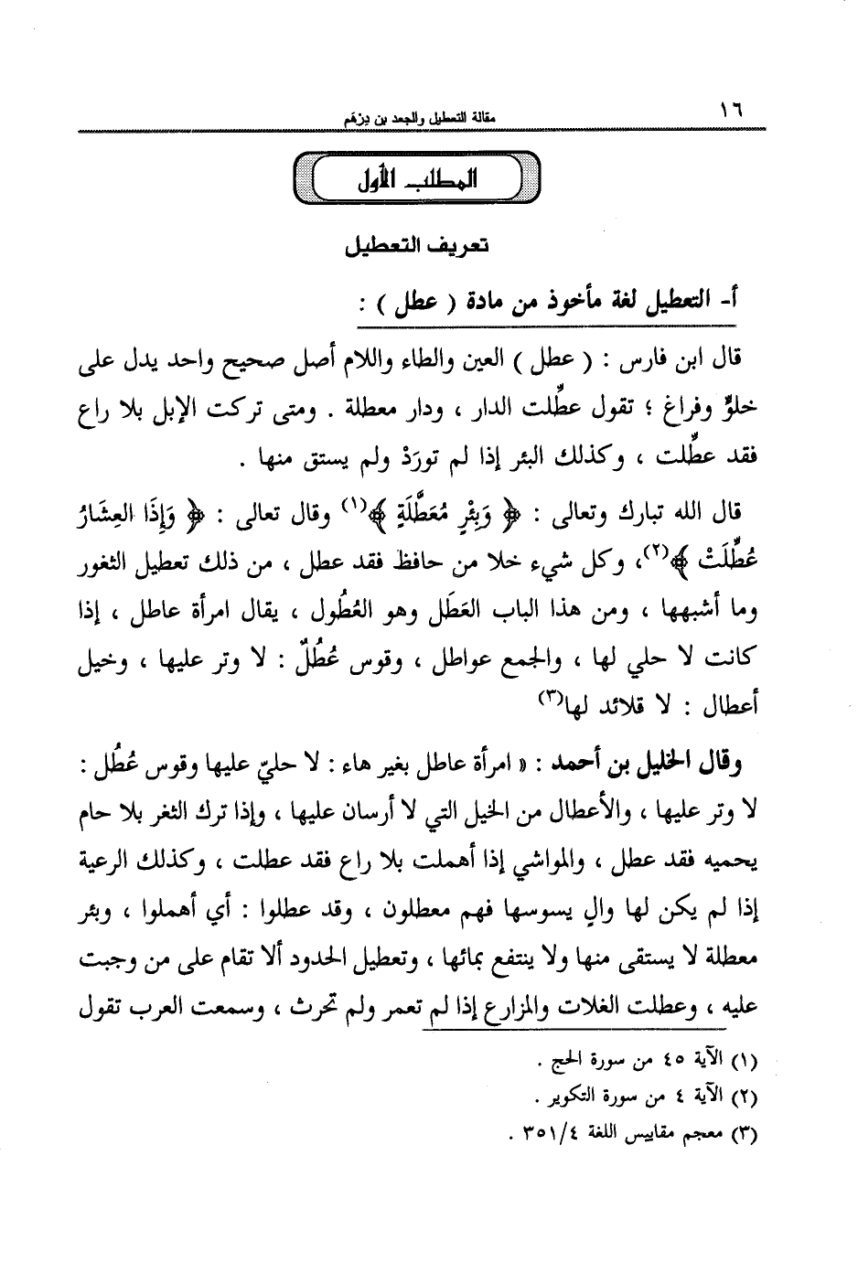 الباب الأول: تعريف مقالة التعطيل وأطواره