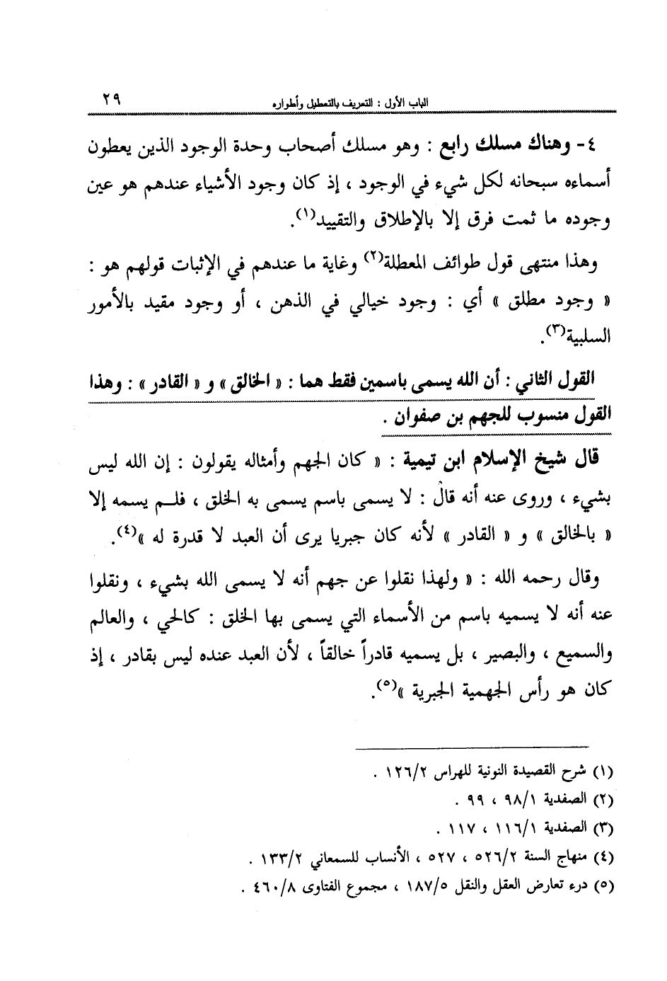 وهذا منتهى قول طوائف المعطلة.2 وغاية ما عندهم في الإثبات قولهم هو: (وجود مطلق) أي وجود خيالي في الذهن، أو وجود مقيد بالأمور السلبية،3