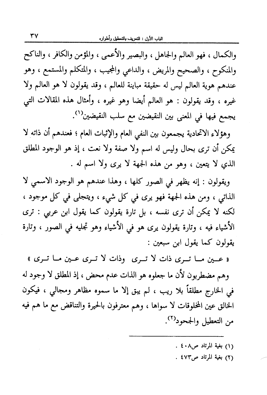 وهم مضطربون لأن ما جعلوه هو الذات عدم محض، إذ المطلق لا وجود له في الخارج مطلقاً بلا ريب، لم يبق إلا ما سموه مظاهر ومجالي، فيكون الخالق عين المخلوقات لا سواها، وهم معترفون بالحيرة والتناقض مع ما هم فيه من التعطيل والجحود.2