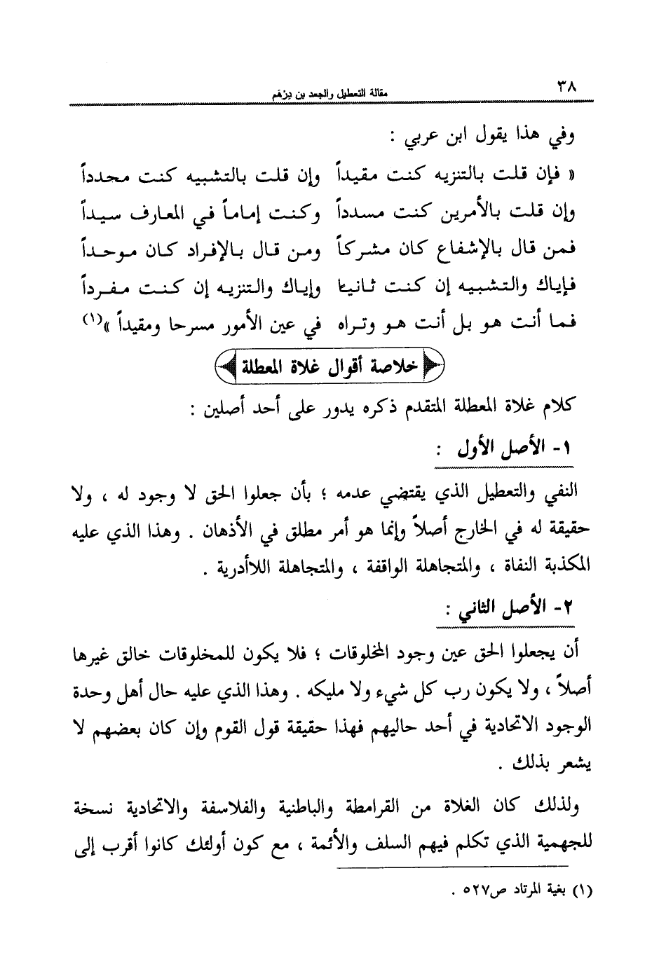كلام غلاة المعطلة المتقدم ذكره يدور على أحد أصلين: