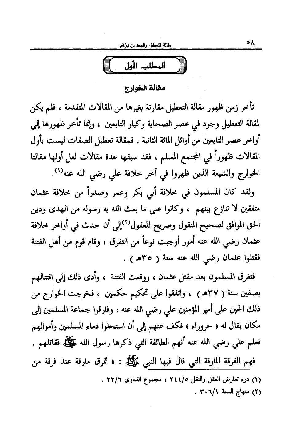 1- درء تعارض العقل والنقل 5/244، مجموع الفتاوى 6/33.