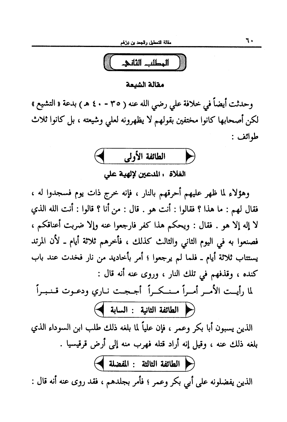 "المفضلة" الذين يفضلونه على أبي بكر وعمر، فأمر بجلدهم، فقد روى عنه أنه قال: