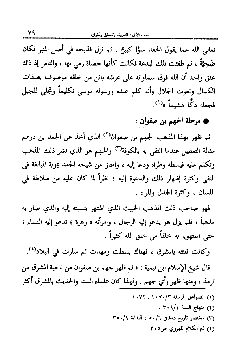 ثم ظهر بهذا المذهب الجهم بن صفوان2 الذي أخذ عن الجعد بن درهم مقالة التعطيل عندما التقى به بالكوفة3 والجهم هو الذي نشر ذلك المذهب وتكلم عليه فبسطه وطراه ودعا إليه، وامتاز عن شيخه الجعد بمزية المبالغة في النفي وكثرة إظهار ذلك والدعوة إليه، نظراً لما كان عليه من سلاطة في اللسان، وكثرة الجدل والمراء.
