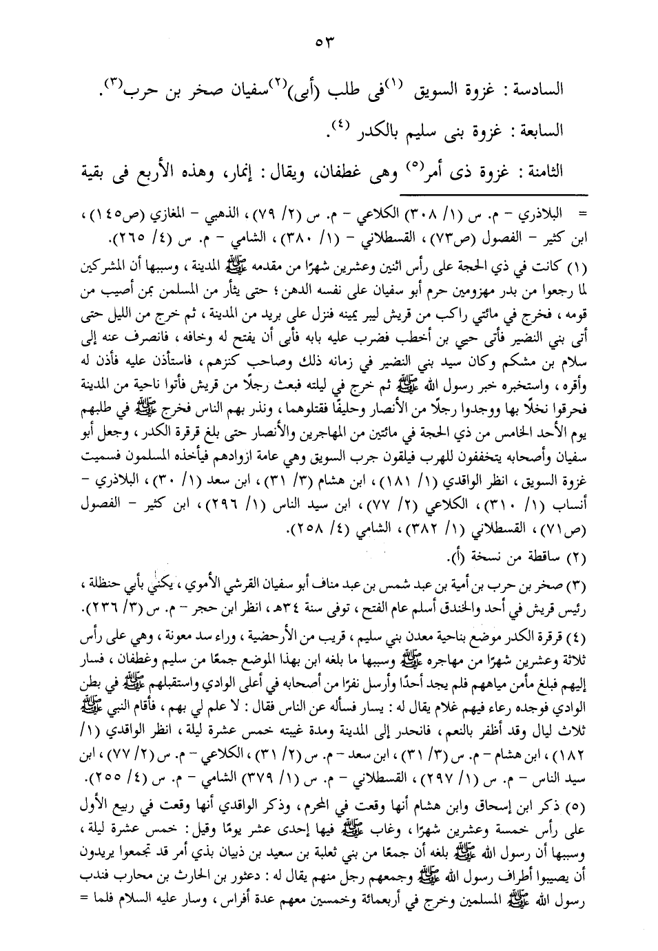 السَّادِسَة غَزْوَة السويق فِي طلب أبي سُفْيَان صَخْر بن حَرْب