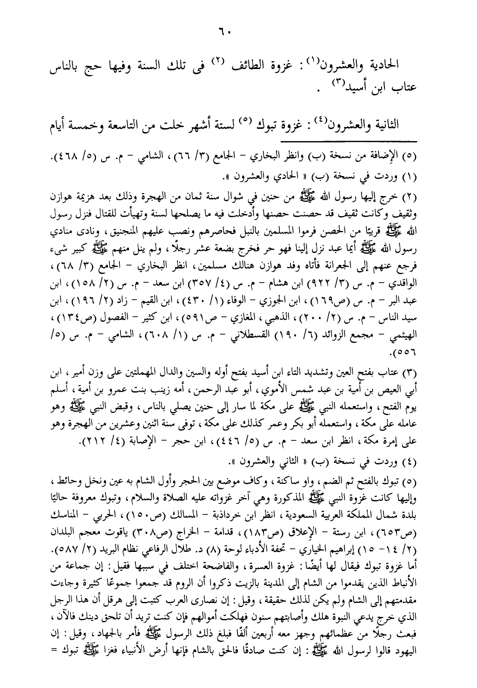 الثَّانِيَة وَالْعشْرُونَ غَزْوَة تَبُوك لسِتَّة أشهر خلت من التَّاسِعَة وَخَمْسَة أَيَّام