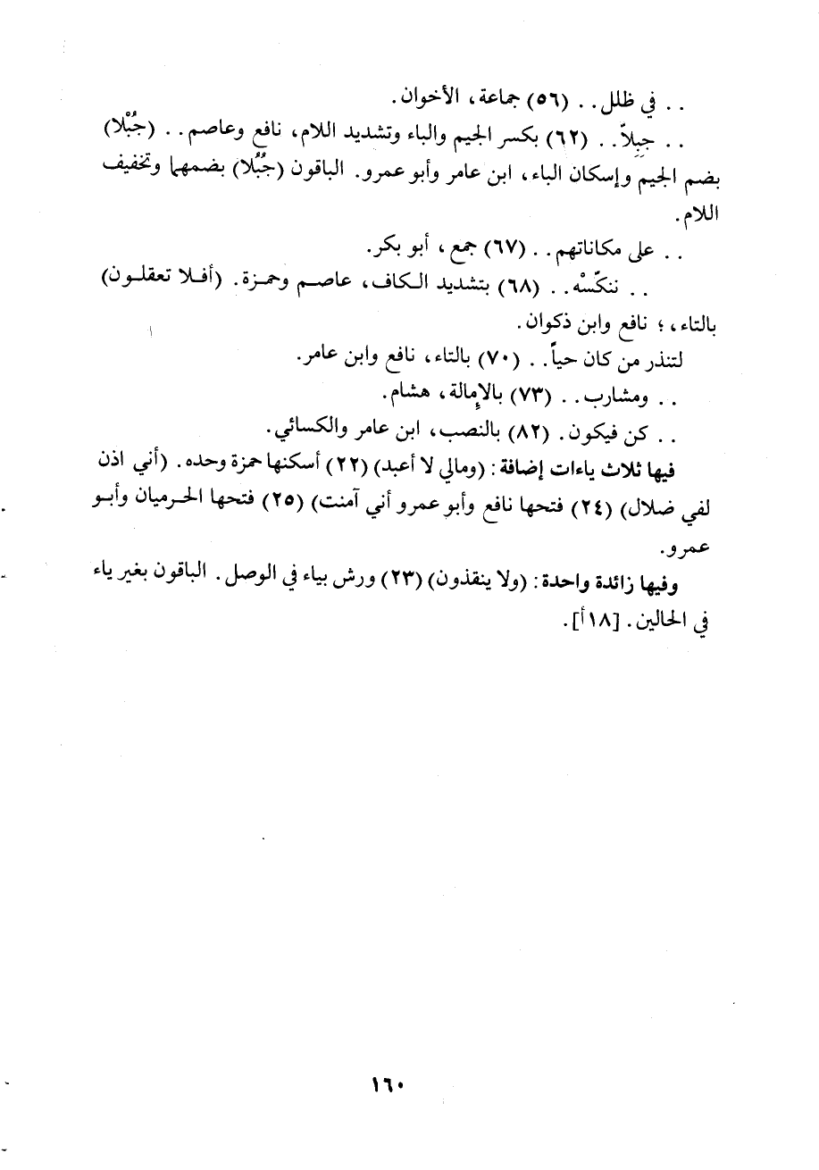 (جِبِلاً) 62 بكسر الجيم والباء وتشديد اللام، نافع وعاصم.. (جُبلا) بضم الجيم وإسكان الباء، ابن عامر وأبو عمرو. الباقون (جُبُلا) بضمهما وتخفيف اللام.